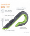 Features a finger-friendly® safety blade made from advanced ceramics. The rust-free blade lasts up to 11 times longer than steel, reverses to double its lifespan, and is much safer to touch than other blades. Unique curved handle is ergodynamic and protects hand during cutting.