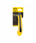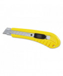 Made with stainless steel and high impact polymer components. The smooth slider mechanism features an audible click-stop and is self locking for security. Blade sections snap-off providing the user with fresh, sharp cutting points. Removable blade snapper included in cap of knife. High visibility spare blade holder designed for safety.