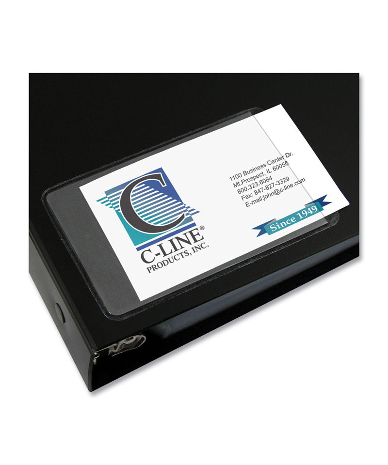 Self-Adhesive Business Card Holders, Side Load, 2 x 3.5, Clear, 10/Pack