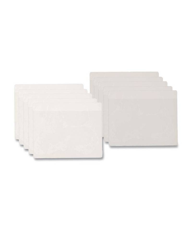 Crystal clear front and back with white peel-away back panel. Attach to hold items such as business cards, index cards and full size documents....