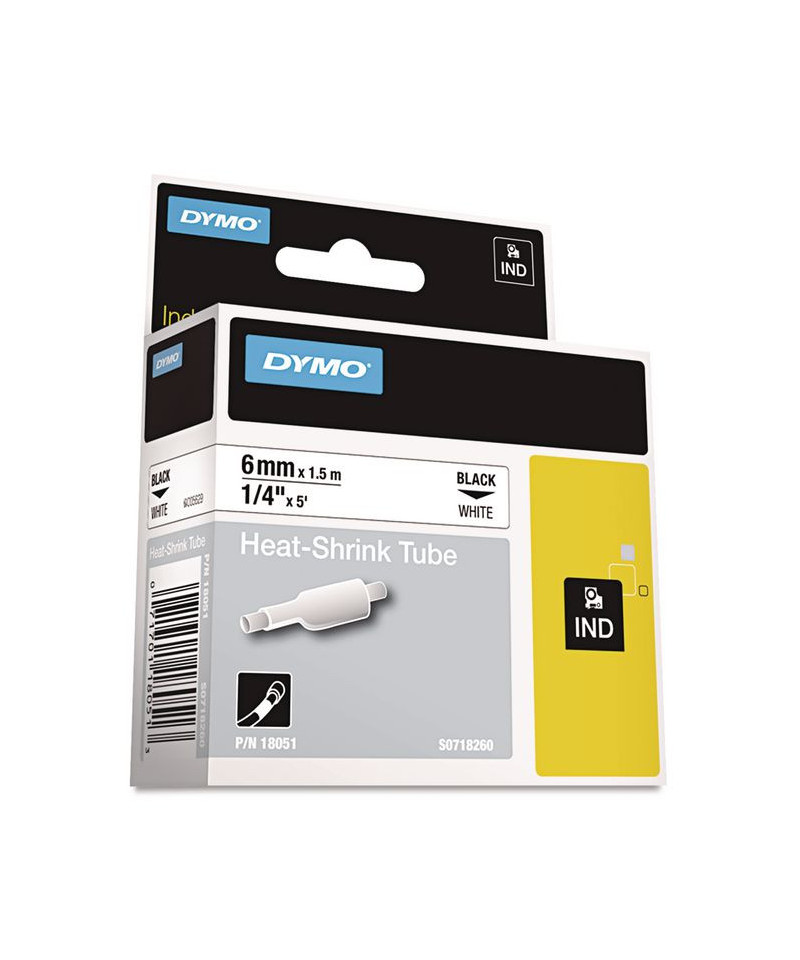 Rhino Heat Shrink Tubes Industrial Label Tape, 0.25" x 5 ft, White/Black Print