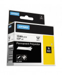 Rhino Permanent Poly Industrial Label Tape, 0.5" x 18 ft, White/Black Print