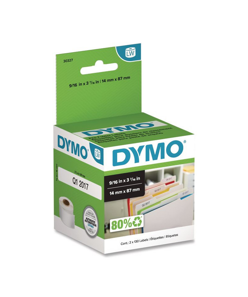 LabelWriter 1-UP File Folder Labels, 0.56" x 3.43", White, 130 Labels Roll, 2 Rolls/Pack