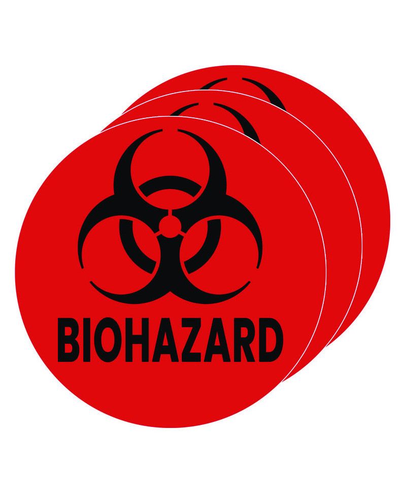 Vinyl Decals, Biohazard, 4" Diameter, Red/Black, 3/Pack