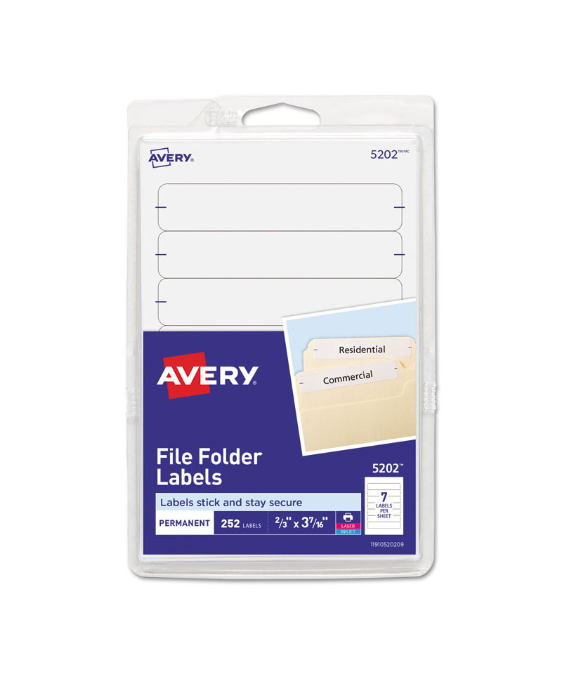 Make file folders stand out with a professional look. These file folder labels feature a strip of eye-catching color at the top to make it even easier to find just the folder you're looking for and are great for color coding. Write on the labels by hand or use the free templates available from Avery® Design & Print to format them easily on your computer and print them with your laser or inkjet printer. The permanent adhesive ensures that your label will stay put without curling away. For a truly standout design, it's hard to beat these convenient labels.