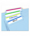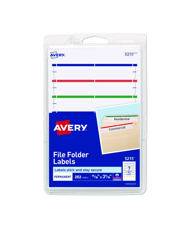 Make file folders stand out with a professional look. These file folder labels feature a strip of eye-catching color at the top to make it even easier to find just the folder you're looking for and are great for color coding. Write on the labels by hand or use the free templates available from Avery® Design & Print to format them easily on your computer and print them with your laser or inkjet printer. The permanent adhesive ensures that your label will stay put without curling away. For a truly standout design, it's hard to beat these convenient labels.