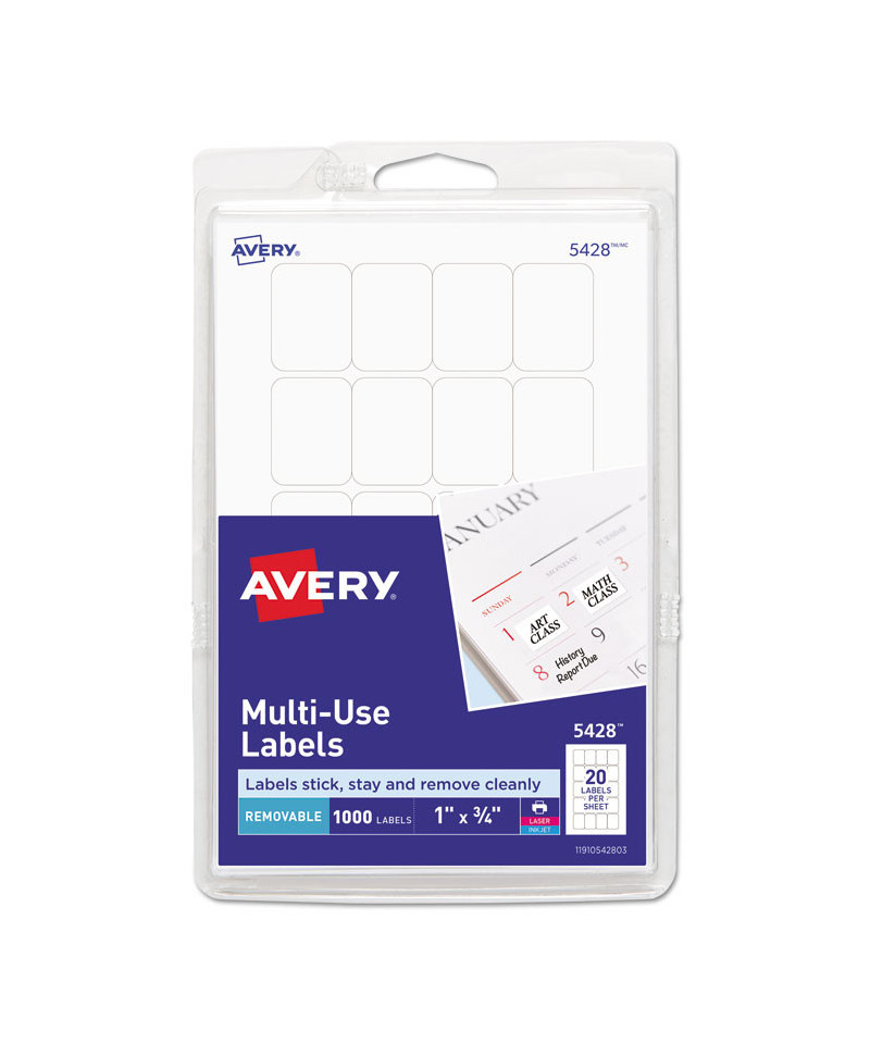 Need a versatile label that sticks around only as long as you want it to? Look no further than these print or write removable labels. Their standard or round size makes them ideal for labeling objects for sale, identifying the contents of containers, marking drawers and shelves and more. With free templates from Avery® Design & Print, it's easy to customize the labels and print. Removable adhesive makes the label stay put where you placed it but lets you peel it away easily when the label is no longer needed. With these labels, your labeling needs are met and you control the duration. Identify the contents of containers and label items for sale more quickly and conveniently.