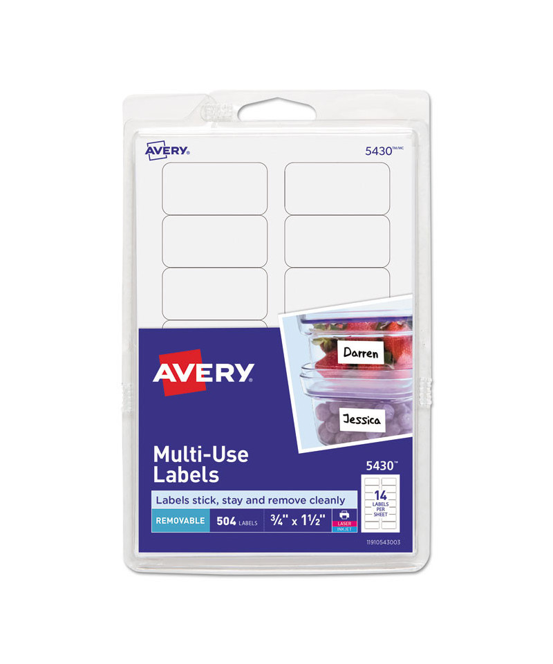 Labels stick, stay and remove cleanly without leaving a residue! Ideal for containers, boxes, shelves and more. Adheres to smooth surfaces including paper, cardboard, plastic, wood, glass and metal. Easy to customize using free Avery® designs and templates. For laser and inkjet printers.