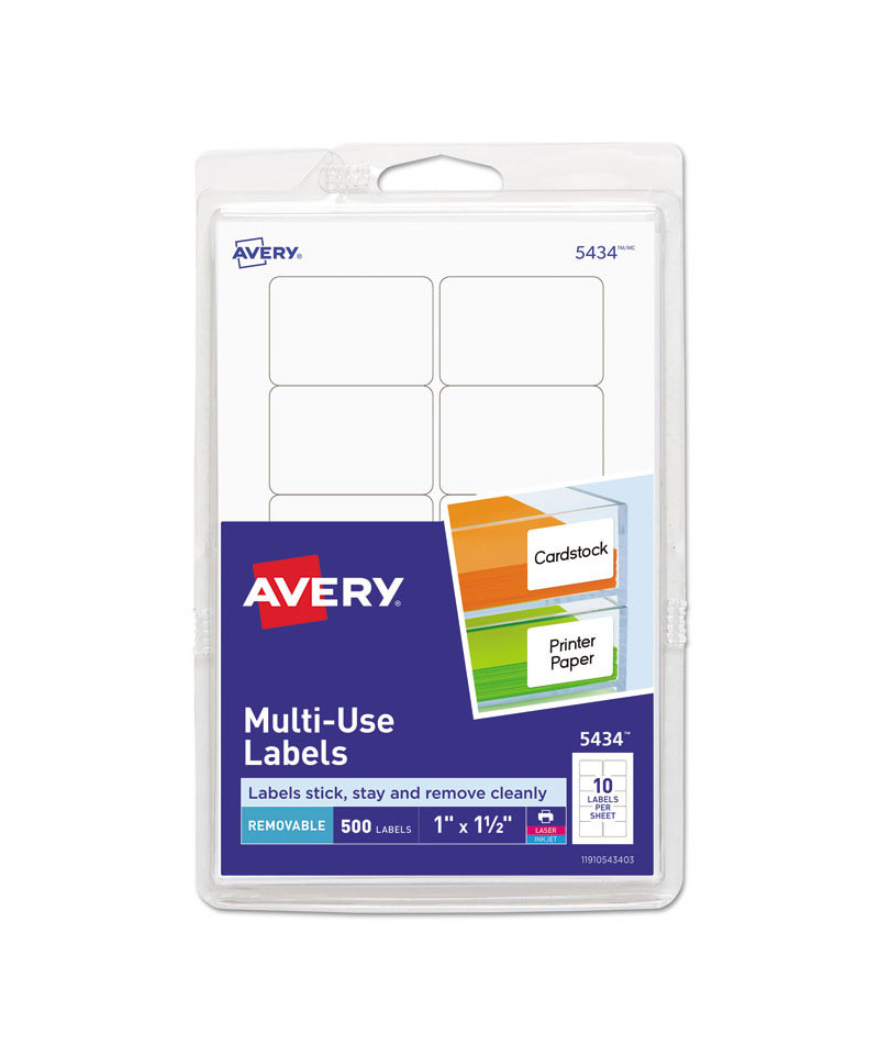 Removable Multi-Use Labels, Inkjet/Laser Printers, 1 x 1.5, White, 10/Sheet, 50 Sheets/Pack, (5434)