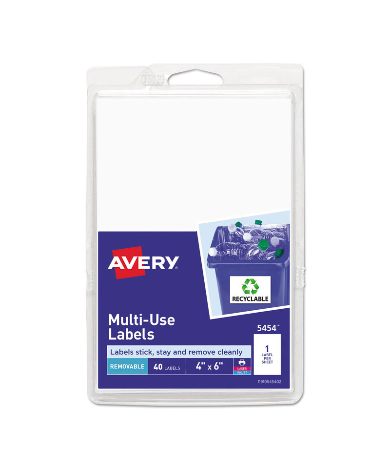 Labels stick, stay and remove cleanly without leaving a residue! Ideal for containers, boxes, shelves and more. Adheres to smooth surfaces including paper, cardboard, plastic, wood, glass and metal. Easy to customize using free Avery® designs and templates. For laser and inkjet printers.