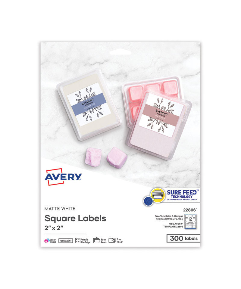 Use square labels to promote your products and company. Sure Feed® technology ensures a reliable feed through printers and copiers. Easy to customize with free designs, QR codes and templates.