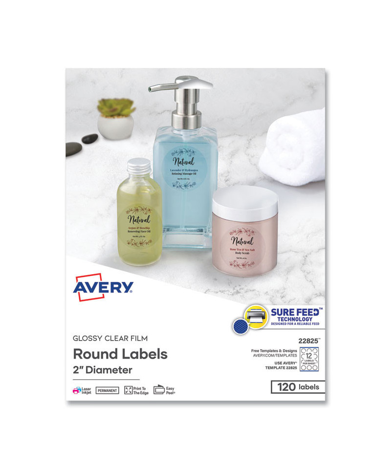 Ideal for merchandising products, labeling gifts, crafts, party favors, jar labels, jam labels and more. Print-to-the-edge feature lets you add bright, bold colors and text all the way to the edge of the label. Permanent adhesive ensures that they stick and stay. Easy to customize with free designs and templates from Avery® Design & Print. These premium round labels are a great way to get your products noticed.