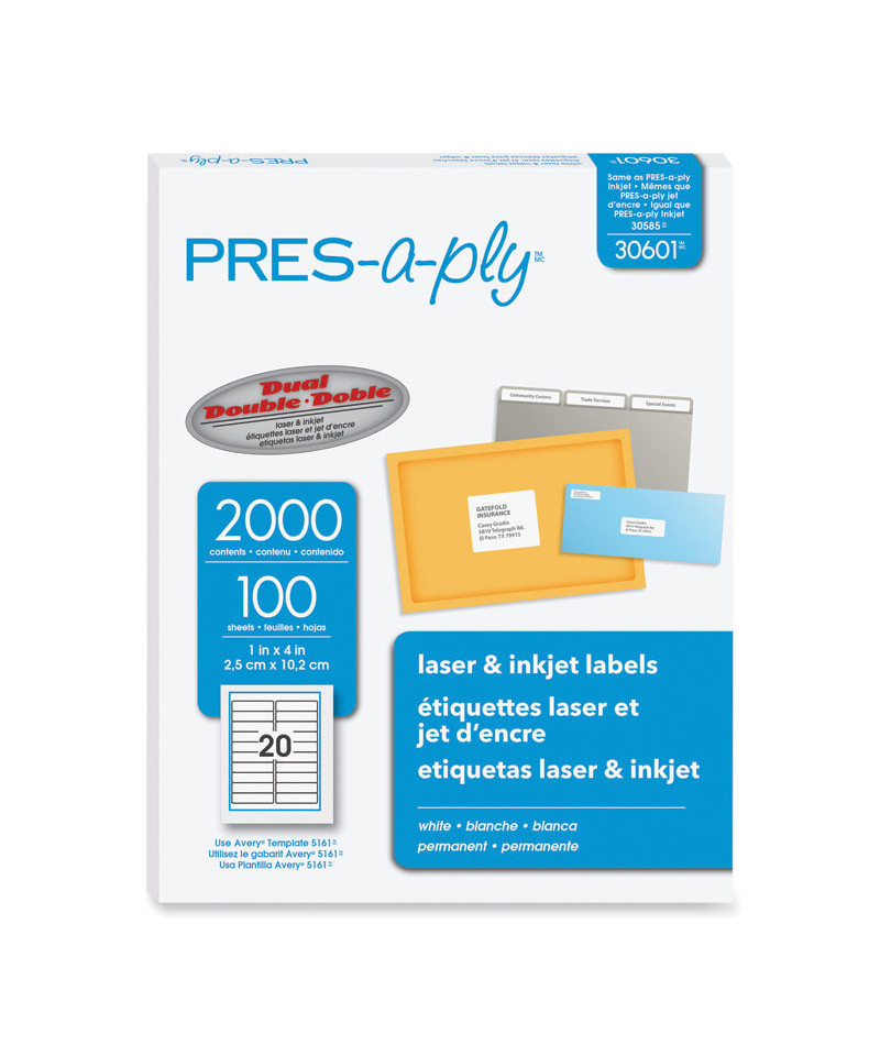 Economical PRES-a-ply® labels can be used for almost every addressing and identification need. Great for high-volume, low-cost printing. 8 1/2" x 11" sheets.