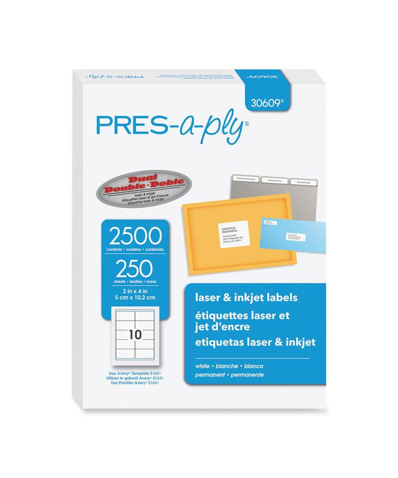 Economical PRES-a-ply® labels can be used for almost every addressing and identification need. Great for high-volume, low-cost printing. 8 1/2" x 11" sheets.