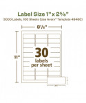 EcoFriendly Mailing Labels, Inkjet/Laser Printers, 1 x 2.63, White, 30/Sheet, 100 Sheets/Pack