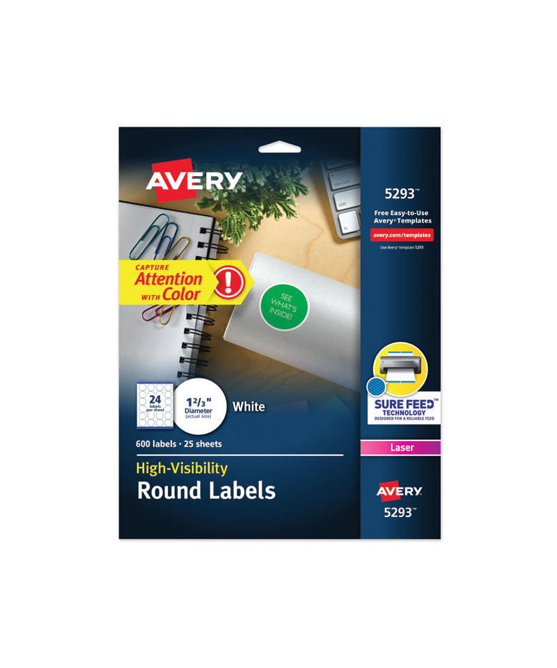 Customize labels with attention-getting images; make your most important messages stand out with high-visibility color labels. Ideal for announcements, priority messages, identification and more! Easy to customize with free templates from Avery® Design & Print. 8.5" x 11" sheets.