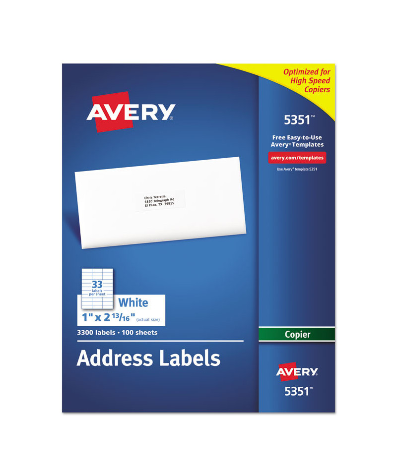 Create a master sheet once and produce as many labels as needed quickly and easily using your copier. Bright white or clear labels are perfect for creating labels for addressing, shipping, bar coding and organizing. Easy to customize with free templates from Avery® Design & Print. 8 1/2" x 11" sheets.