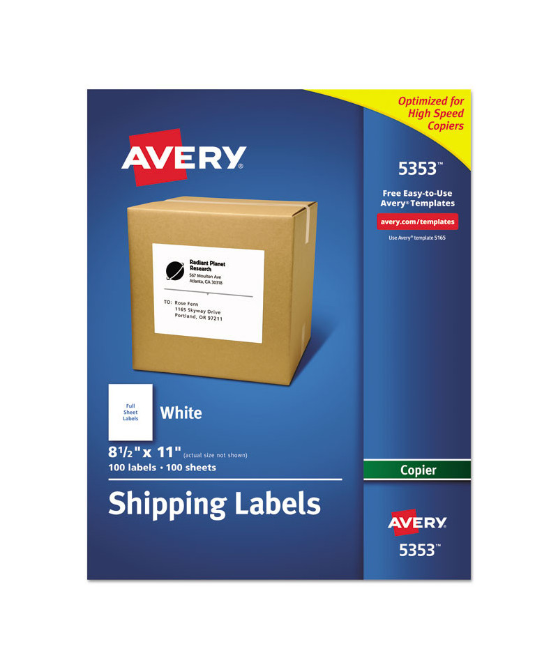 Create a master sheet once and produce as many labels as needed quickly and easily using your copier. Bright white or clear labels are perfect for creating labels for addressing, shipping, bar coding and organizing. Easy to customize with free templates from Avery® Design & Print. 8 1/2" x 11" sheets.