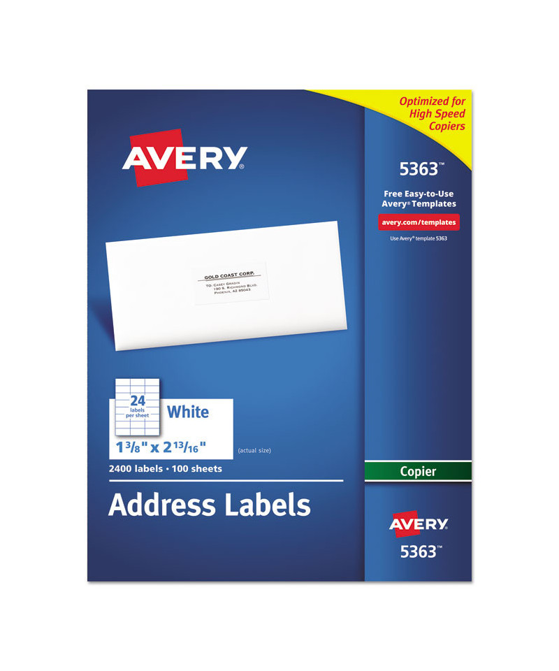Create a master sheet once and produce as many labels as needed quickly and easily using your copier. Bright white or clear labels are perfect for creating labels for addressing, shipping, bar coding and organizing. Easy to customize with free templates from Avery® Design & Print. 8 1/2" x 11" sheets.