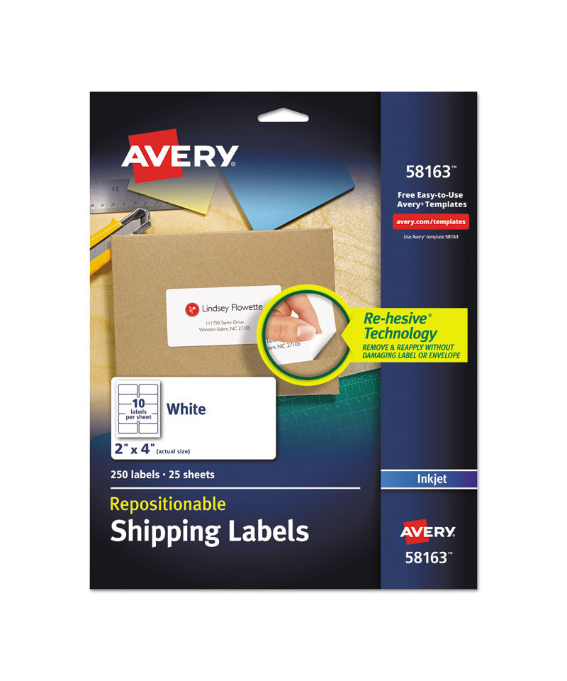 When you want your labels placed just right, count on these repositionable addressing and shipping labels to help you get the job done. It's easy to correct labels placed improperly, upside down or even with the wrong address. With Avery® Re-hesive™ technology, you can remove and reapply without damaging the label or envelope. But over time, the adhesive becomes permanent and is guaranteed not to fall off. Easy to customize with free templates and designs from Avery® Design & Print. It's that easy.