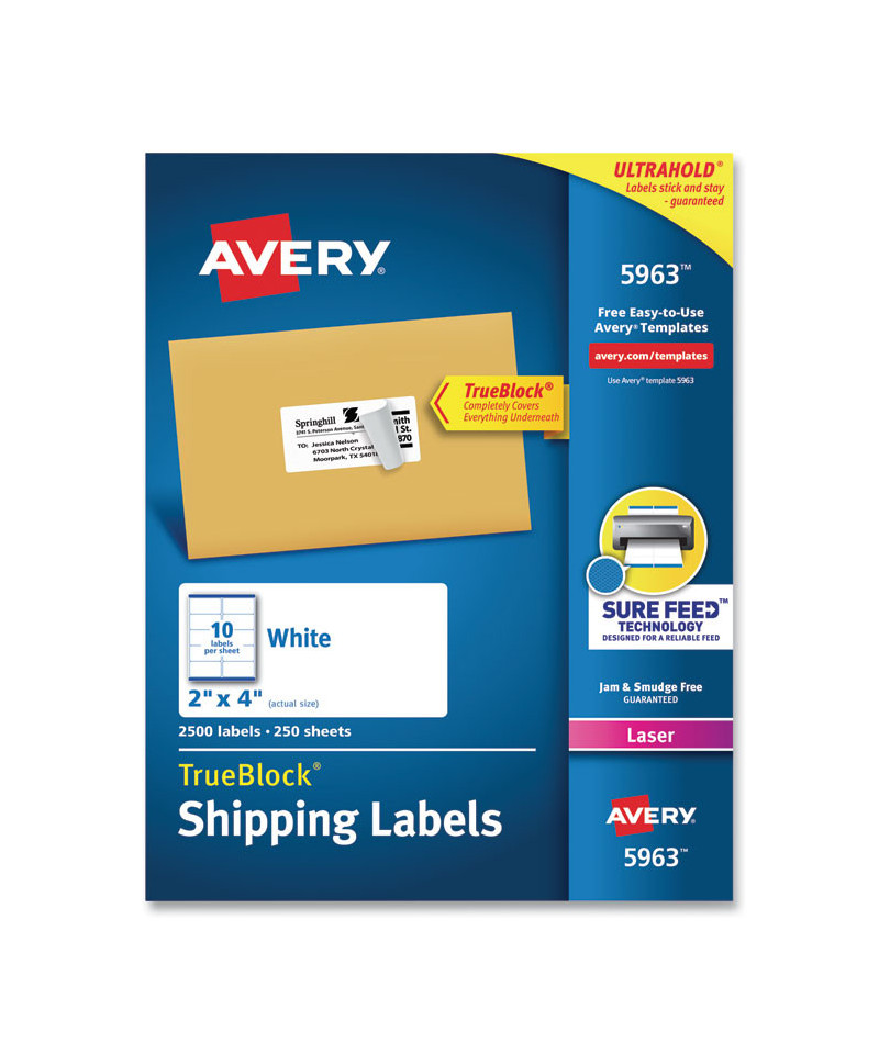 Make sure your packages get where they're supposed to go without any confusing markings showing through when you use these shipping labels. TrueBlock® Technology completely covers everything underneath. The adhesive sticks to more tough surfaces, ensuring your label doesn't fall off your package. It's easy to create custom labels with logos, barcodes and more. Just print your labels right from your own printer. It's easier than ever to get the job done right.
