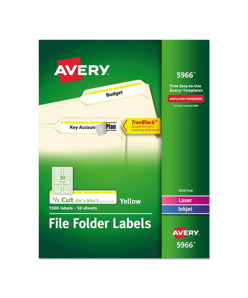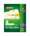 This is the mark of a true professional. Use these file folder labels with TrueBlock® technology to give ordinary folders a clean, organized look that's easy to identify. These innovative labels are designed to completely cover everything underneath, from markings to old, existing labels. Plus, these labels are guaranteed to stick and stay, without curling or lifting. And with free templates from Avery® Design & Print you can put smart label design in plain view, or add your own custom colors to create your own filing system. Simply type in text to identify folders or documents. After printing, you'll have professional-looking labels that you can spot right away. 8 1/2" x 11" sheets for laser and inkjet printers.