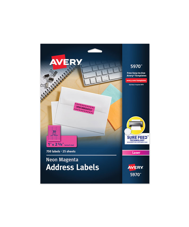 Customize labels with attention-getting images; make your most important messages stand out with high-visibility color labels. Ideal for announcements, priority messages, identification and more! Easy to customize with free templates from Avery® Design & Print. 8.5" x 11" sheets.
