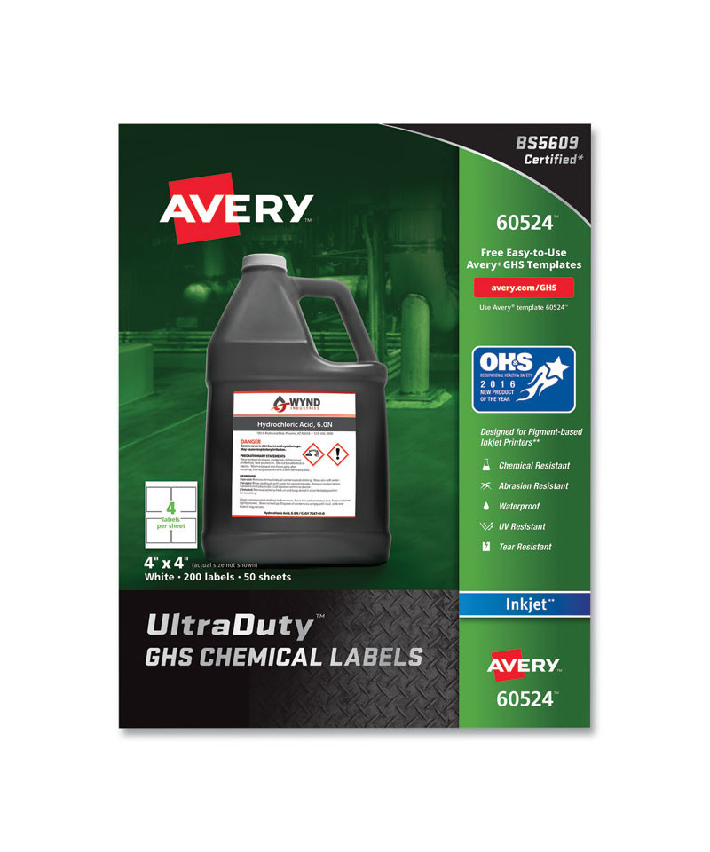 UltraDuty GHS Chemical Waterproof and UV Resistant Labels, 4 x 4, White, 4/Sheet, 50 Sheets/Pack
