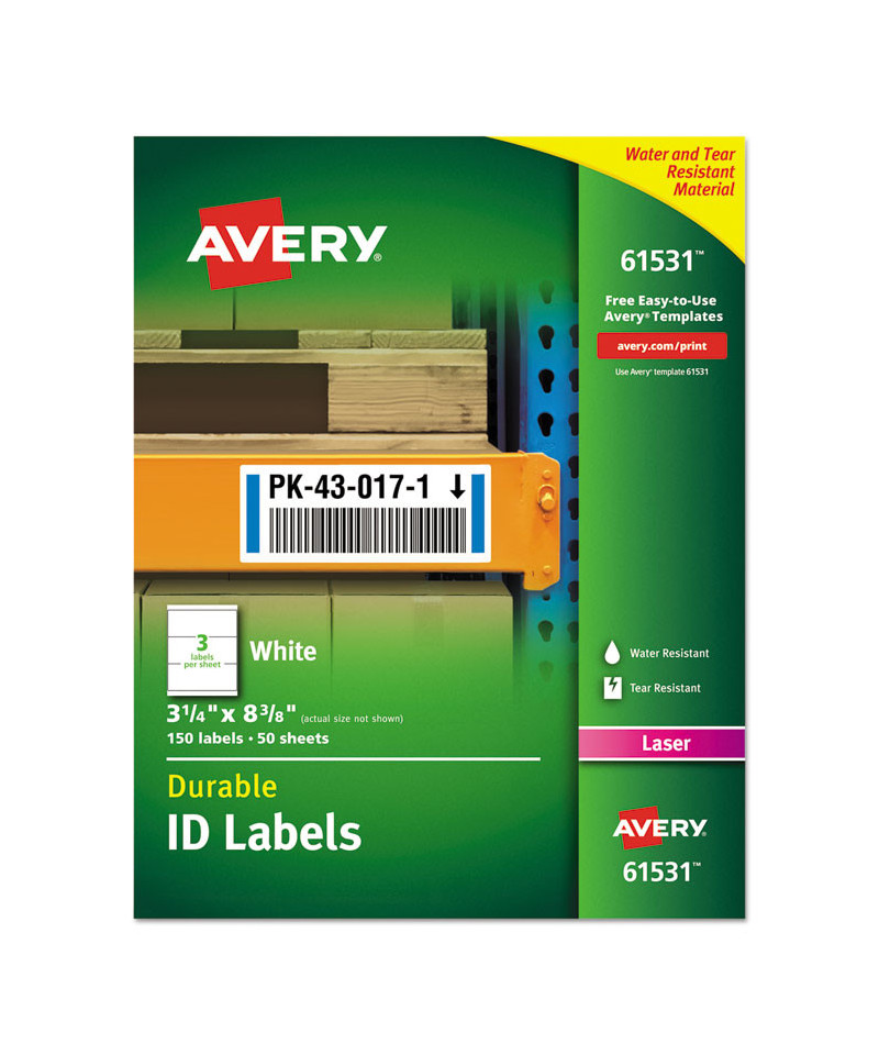 These white permanent durable ID labels with TrueBlock® technology will make ownership of office supplies clear. The TrueBlock® Technology completely covers everything underneath, so you can re-identify items with ease. You can customize the labels for just about any use with free templates from Avery® Design & Print. Print labels from your laser printer with sharp text and adhere them to paper, glass, plastic, metal and more. And since they resist moisture, scuffing, tearing and smudging, these labels always look good.