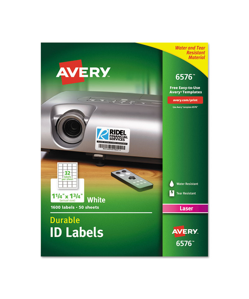 These white permanent durable ID labels with TrueBlock® technology will make ownership of office supplies clear. The TrueBlock® Technology completely covers everything underneath, so you can re-identify items with ease. You can customize the labels for just about any use with free templates from Avery® Design & Print. Print labels from your laser printer with sharp text and adhere them to paper, glass, plastic, metal and more. And since they resist moisture, scuffing, tearing and smudging, these labels always look good.