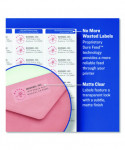 All your mailing is easier with these Clear Easy Peel® Mailing Labels. Labels virtually disappear on white and light colored surfaces. These labels feature exclusive Avery® Sure Feed® technology to improve print alignment and avoid jamming. The blue, textured strip on the top of each sheet provides better grip for printer rollers and helps feed the sheet through your printer. Ultrahold® permanent adhesive makes sure that these labels stick and stay without peeling, curling or falling off. The Pop-up Edge offers fast peeling--just bend the label sheet to expose the label edge, peel, then fold the sheet back to flat in a jiffy. They're also great as gift tags or as ID and organization labels. Easily import names, addresses and logos and print on your labels with free templates and designs from Avery® Design & Print. Get pages of professional-looking labels filled with eye-catching text and graphics.