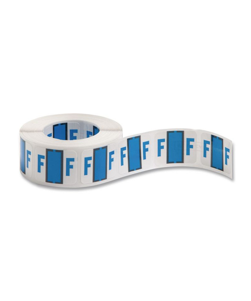 A-Z Color-Coded End Tab Filing Labels, F, 1 x 1.25, White, 500/Roll
