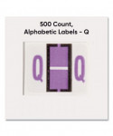 Keep files organized at a glance with these alphabetic labels that feature a wraparound solid color bar and a colored character printed on a white background. Colors are compatible with end tab systems using the bar-style format. Convenient dispensing box for easy peel off and application. Includes 500 labels per roll. Compatible with Tab® Products 1283 series alphabetical labels.