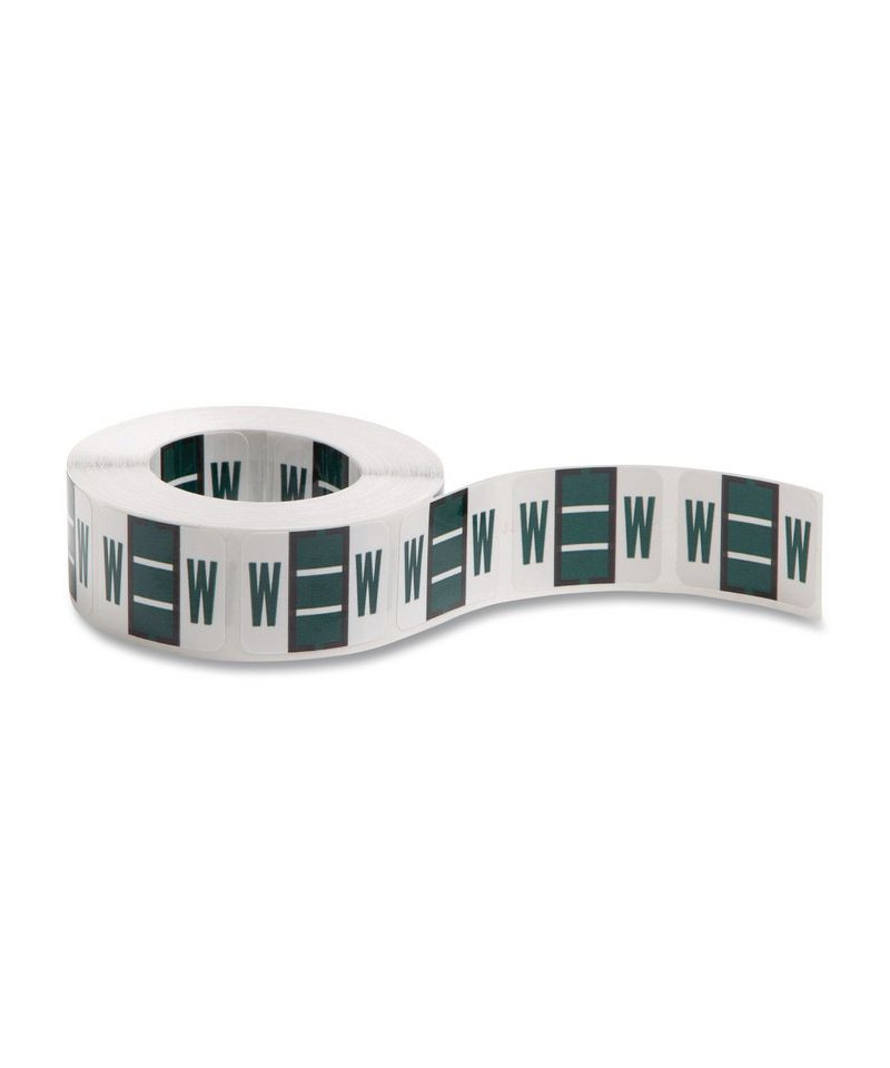 A-Z Color-Coded End Tab Filing Labels, W, 1 x 1.25, White, 500/Roll