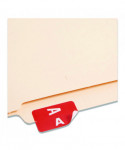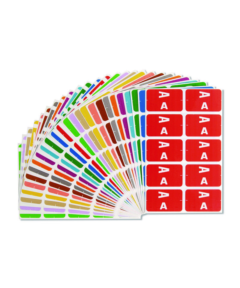 The standard for alphabetic color coding in both top tab and end tab filing systems, these wraparound style labels can be read from both sides. Thirteen colors code all 26 letters; first half of alphabet has colored letter against white and second half has white letter against colored background. Two letters are assigned to each label to reduce inventory. Simply tear off the unused letter when removing from the backing sheet. Use alone for midsized alphabetic filing systems.