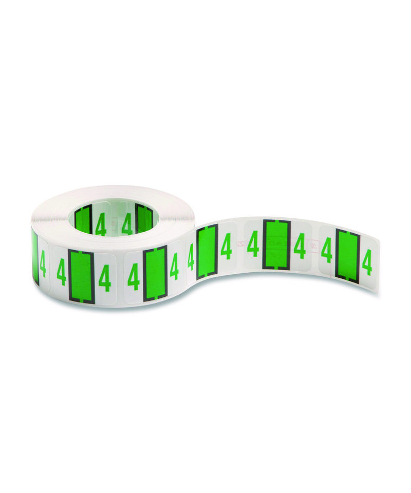 Numerical End Tab File Folder Labels, 4, 1 x 1.25, White, 500/Roll