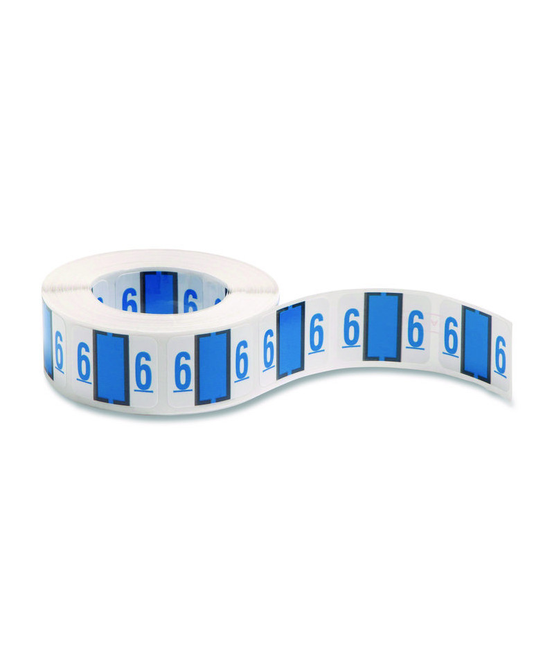 Keep files organized with pre-printed numeric labels. Featuring a color-coded wraparound design, they're easy to read from the front and back. Clear lamination not only prevents the smudging that's typical with regular handling, but it also prevents cracking along the center fold line to provide added durability. Convenient dispensing box makes application a snap. Ideal for end-tab, bar-style filing.