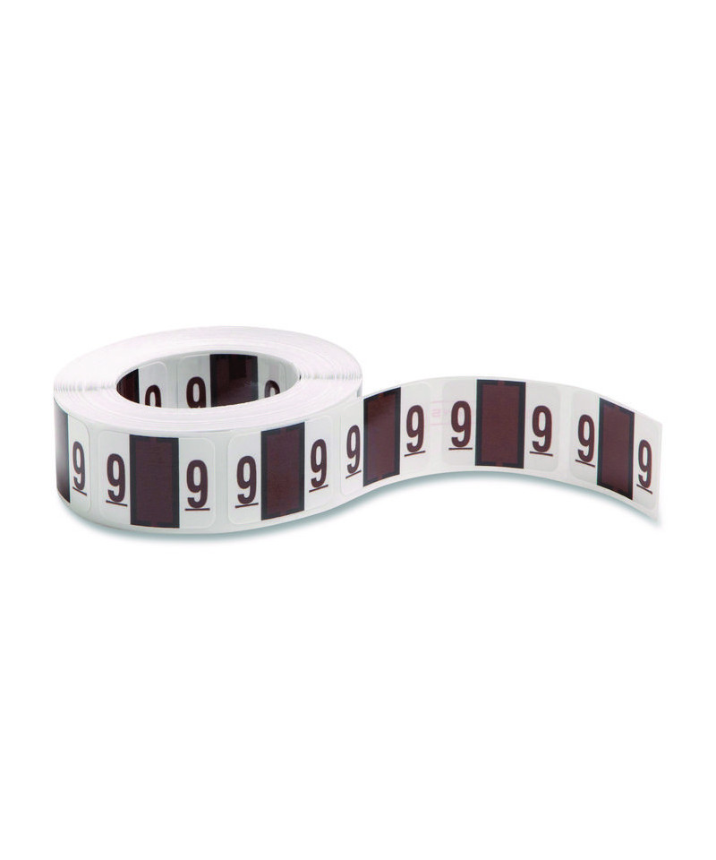 Keep files organized with pre-printed numeric labels. Featuring a color-coded wraparound design, they're easy to read from the front and back. Clear lamination not only prevents the smudging that's typical with regular handling, but it also prevents cracking along the center fold line to provide added durability. Convenient dispensing box makes application a snap. Ideal for end-tab, bar-style filing.