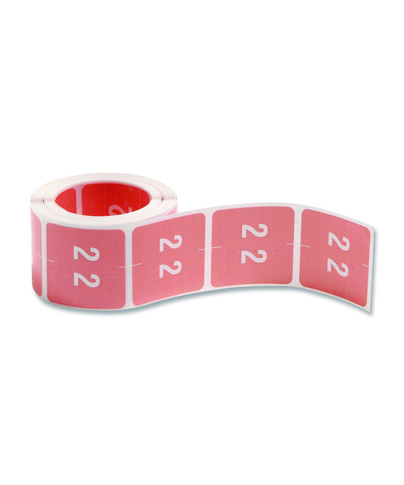 Numerical End Tab File Folder Labels, 2, 1.5 x 1.5, Pink, 250/Roll