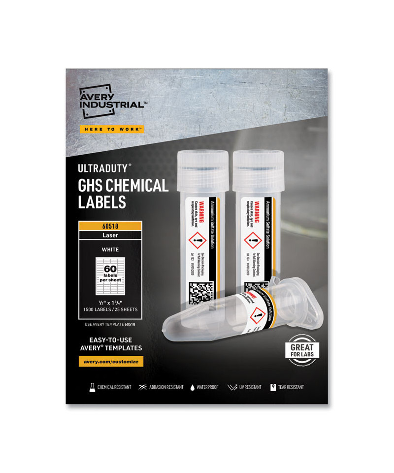 Waterproof and resistant to chemicals, abrasion, sun, tearing, and harsh temperatures. High-performance adhesive. Ideal for labeling drums, totes, pails, jugs and bottles.