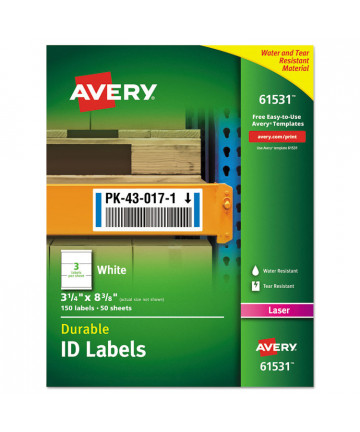 Create your own industrial asset tags, barcode labels, equipment tags, property tags and nameplates with a laser printer. Accurately record and monitor valuable assets such as electronics, equipment, tools, furniture, containers and more. Print on demand and as many as you need, avoiding high minimum order quantities and long lead times. Discourage theft or tampering—after allowing 24 hours for the label to set, once lifted, labels leave behind a checkered-pattern layer and cannot be reapplied. Durable material is chemical resistant, tear resistant and waterproof. Customize with text, graphics, serialized numbers and barcodes with the free Avery Design & Print software with barcode generator.