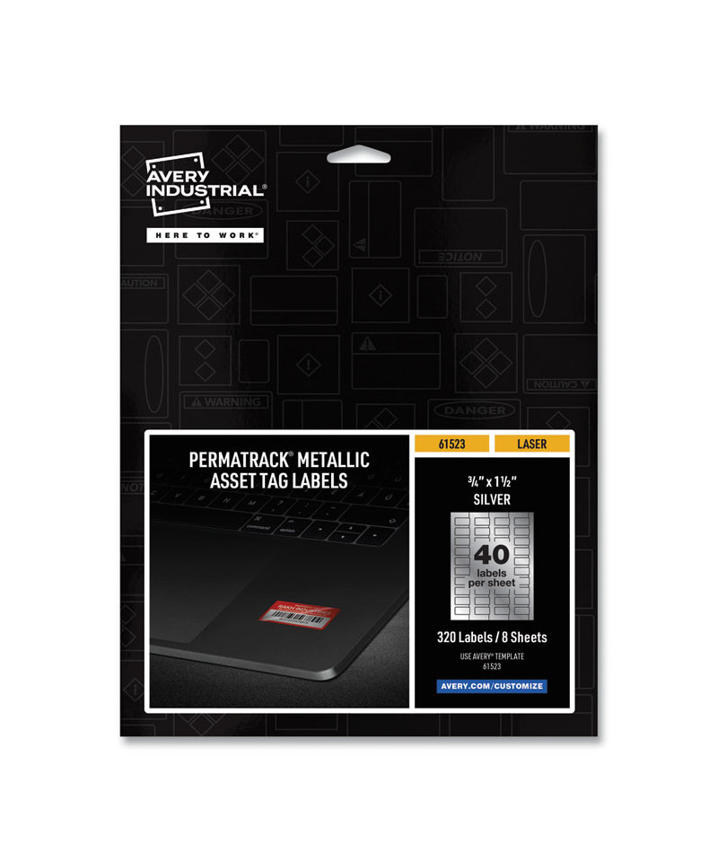 Create your own heavy duty metallic asset tags, barcode labels, equipment tags, property tags and nameplates with a laser printer. Accurately record and monitor valuable assets such as electronics, equipment, tools, furniture, containers and more. Print on demand and as many as you need, avoiding high minimum order quantities and long lead times. Labels feature a strong adhesive and the durable metallic material is chemical resistant, waterproof and abrasion resistant. Customize with text, graphics, serialized numbers and barcodes with the free Avery Design & Print software with barcode generator.