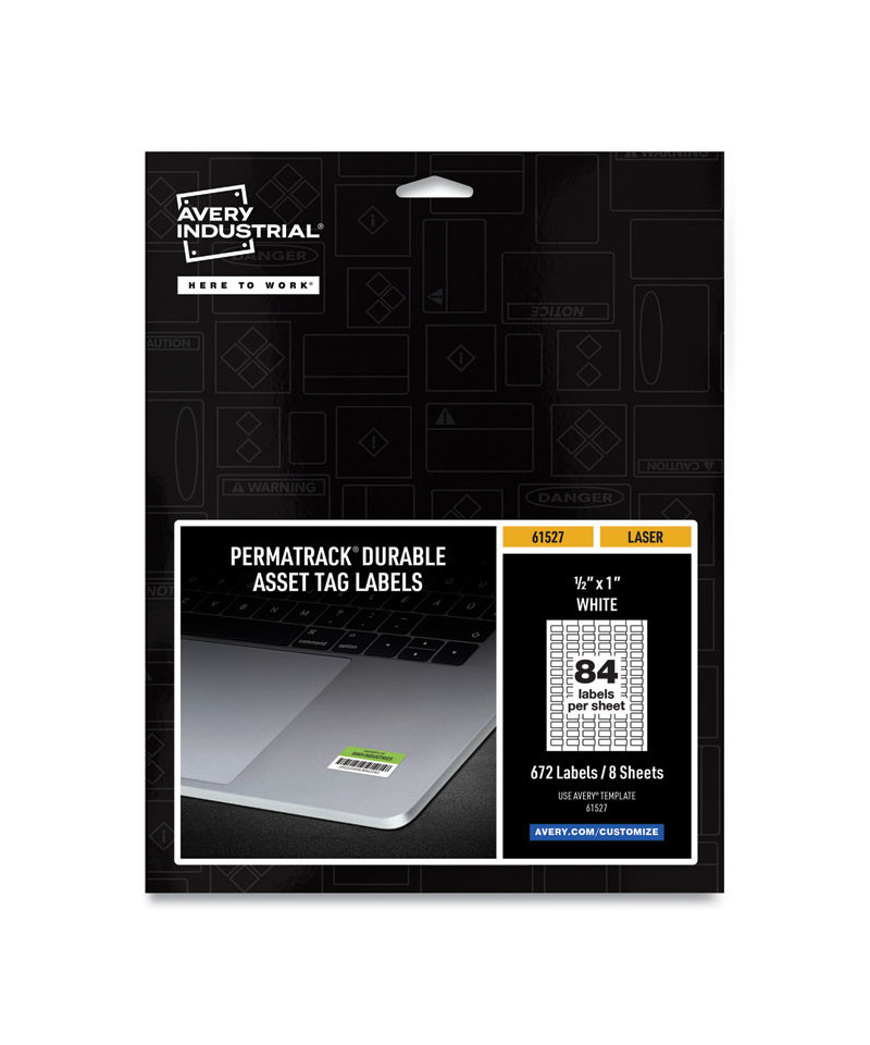 PermaTrack Durable White Asset Tag Labels, Laser Printers, 0.5 x 1, White, 84/Sheet, 8 Sheets/Pack