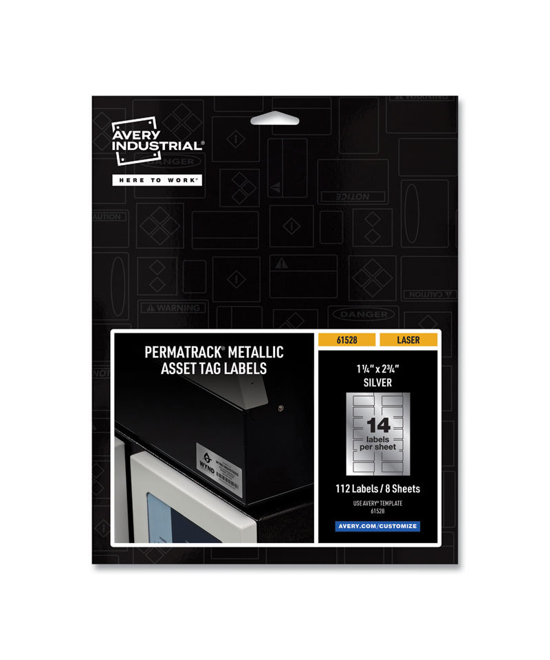 Create your own heavy duty metallic asset tags, barcode labels, equipment tags, property tags and nameplates with a laser printer. Accurately record and monitor valuable assets such as electronics, equipment, tools, furniture, containers and more. Print on demand and as many as you need, avoiding high minimum order quantities and long lead times. Labels feature a strong adhesive and the durable metallic material is chemical resistant, waterproof and abrasion resistant. Customize with text, graphics, serialized numbers and barcodes with the free Avery Design & Print software with barcode generator.