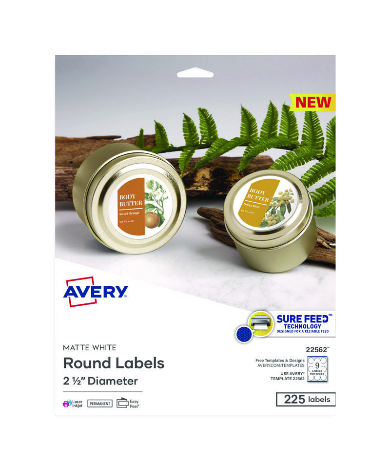 Make sure your handmade gifts and products stand out with Avery labels that offers the professional finishing touch you need. The print-to-the-edge capability allows you to create bright, eye-catching full-bleed labels with sharp text and crisp images printed right to the edge of the stickers with no border or margin. Sure Feed technology helps deliver a more reliable feed through your printer to prevent print misalignments and paper jams. These printable stickers are quick and easy to apply with the patented Easy Peel label sheets with Pop-up Edge. Simply fold the sheet back to display the label edges for convenient and fast peeling that saves time and avoids label waste. Compatible with both laser and inkjet printers to provide crisp and vivid prints. Avery Design & Print makes it easy to create customized labels from your own home or business. The free browser-based software has everything you need to design gift labels, soap labels, thank you stickers, round stickers for kids, party favor labels, and more. Try it out today.