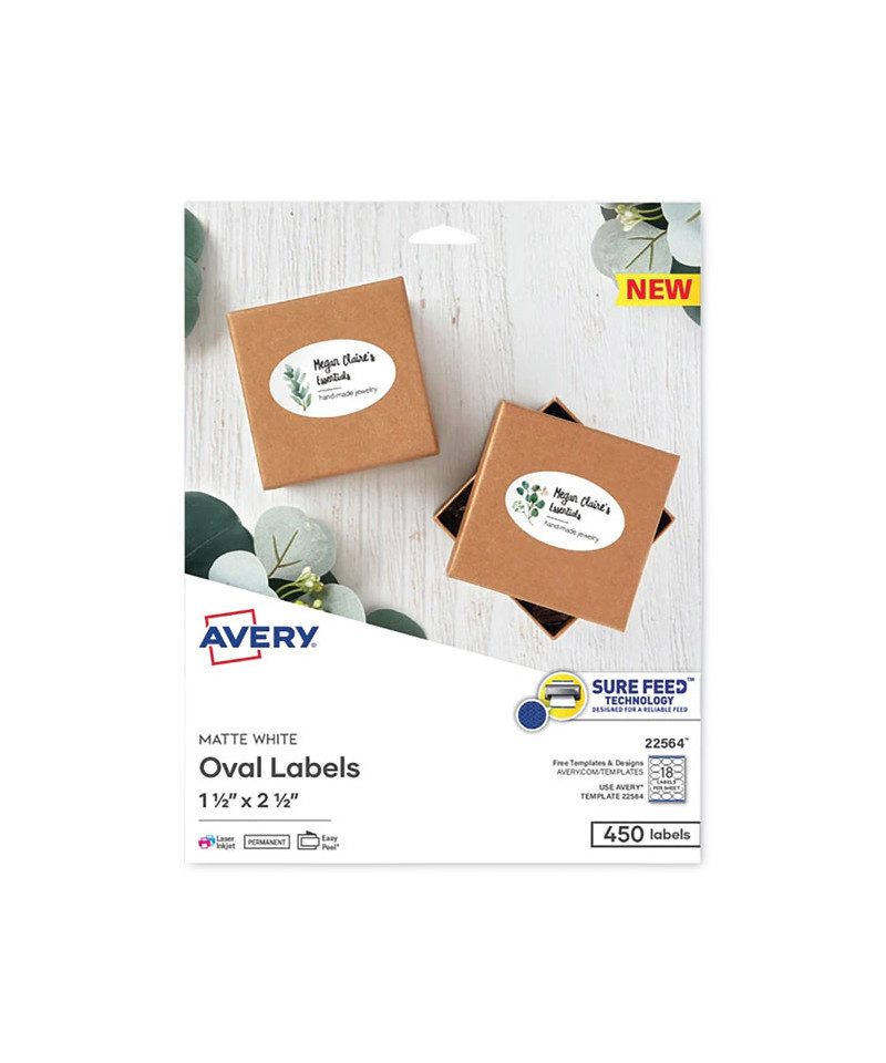 Make sure your handmade gifts and products stand out with Avery labels that offers the professional finishing touch you need. The print-to-the-edge capability allows you to create bright, eye-catching full-bleed labels with sharp text and crisp images printed right to the edge of the stickers with no border or margin. Sure Feed technology helps deliver a more reliable feed through your printer to prevent print misalignments and paper jams. These printable stickers are quick and easy to apply with the patented Easy Peel label sheets with Pop-up Edge. Simply fold the sheet back to display the label edges for convenient and fast peeling that saves time and avoids label waste. Compatible with both laser and inkjet printers to provide crisp and vivid prints. Avery Design & Print makes it easy to create customized labels from your own home or business. The free browser-based software has everything you need to design gift labels, soap labels, thank you stickers, round stickers for kids, party favor labels, and more. Try it out today.