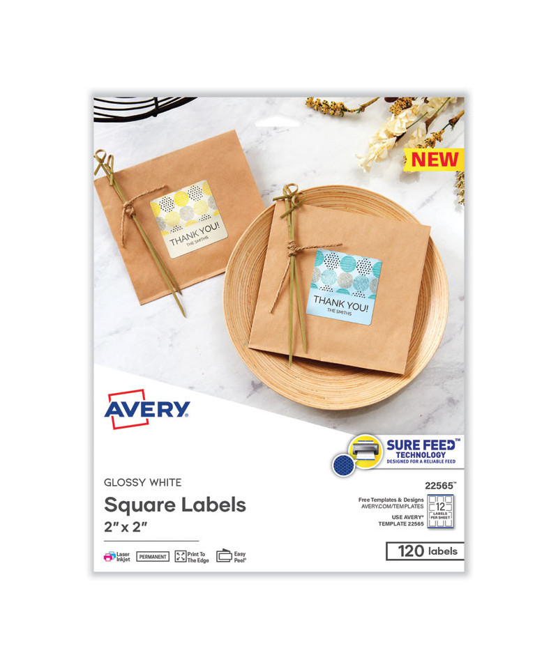 Make sure your handmade gifts and products stand out with these labels that offer the professional finishing touch you need. The print-to-the-edge capability allows you to create bright, eye-catching full-bleed labels with sharp text and crisp images printed right to the edge of the stickers with no border or margin. Sure Feed technology helps deliver a more reliable feed through your printer to prevent print misalignments and paper jams. Quick and easy to apply with the patented Easy Peel label sheets with Pop-up Edge. Simply fold the sheet back to display the label edges for convenient and fast peeling that saves time and avoids label waste. Compatible with both laser and inkjet printers to provide crisp and vivid prints. Avery Design & Print makes it easy to create customized labels fr