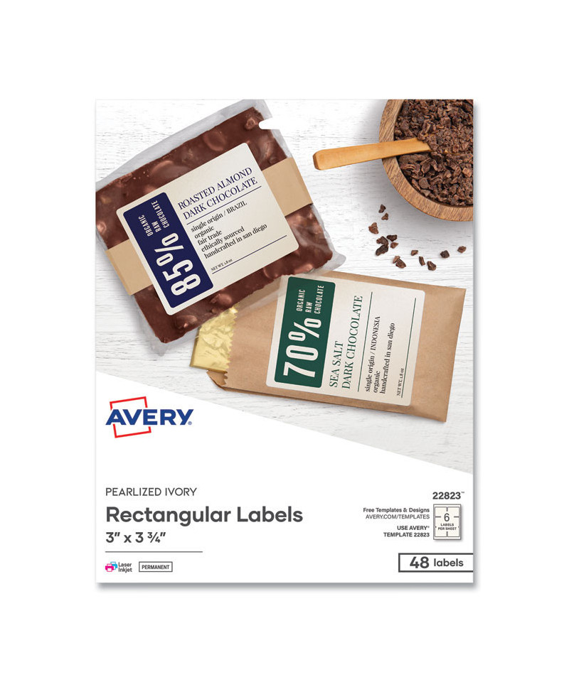 Rectangle Labels, Inkjet/Laser Printers, 3 x 3.75, Pearl Ivory, 6/Sheet, 8 Sheets/Box