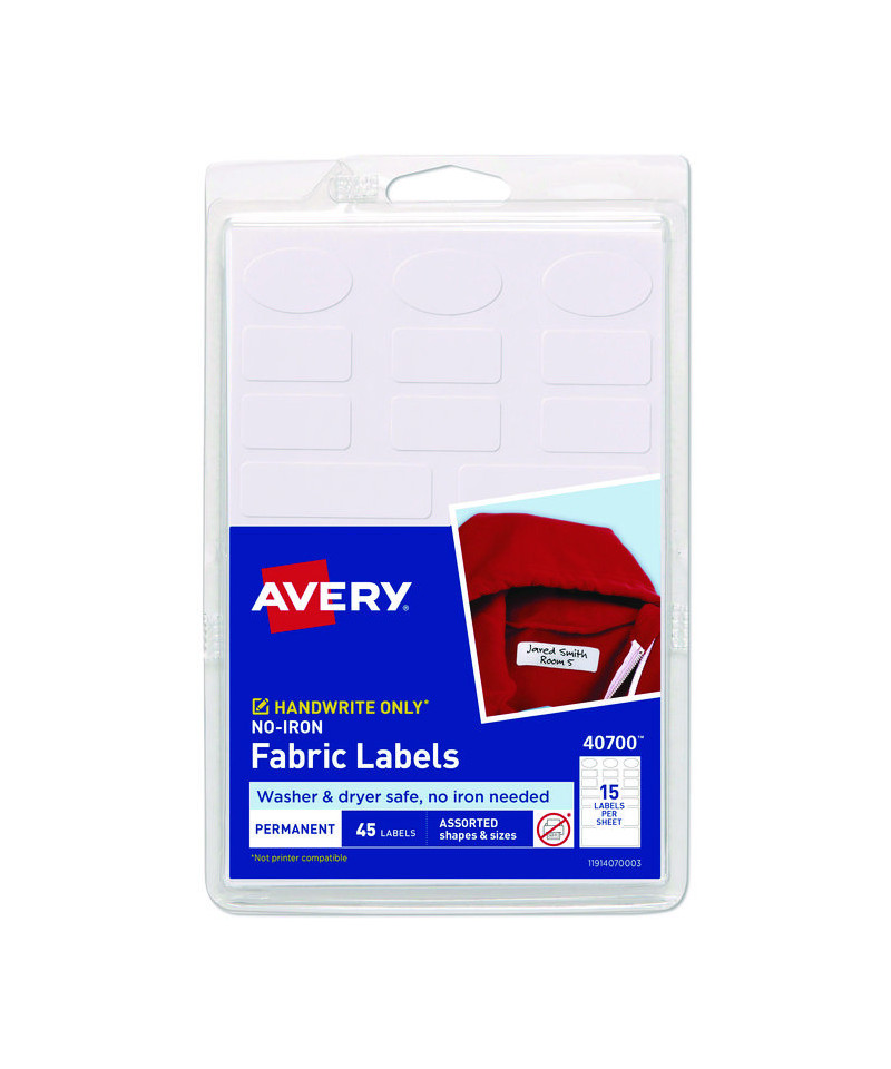 Make sure clothing always gets returned to its rightful owner with these no-iron clothing labels. Great for jackets, school uniforms, baby clothes, blankets, and backpacks. Just write on with a permanent marker, peel and stick. The labels work with many fabrics and are durable enough to withstand multiple washer and dryer cycles.