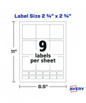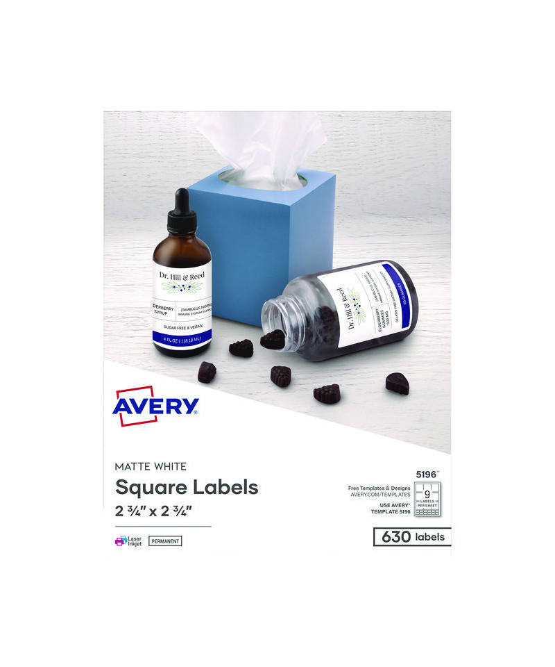 Laser/Inkjet Media Labels, Inkjet/Laser Printers, 2.75" x 2.75", Matte White, 9 Labels/Sheet, 70 Sheets/Box
